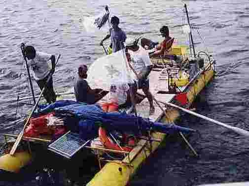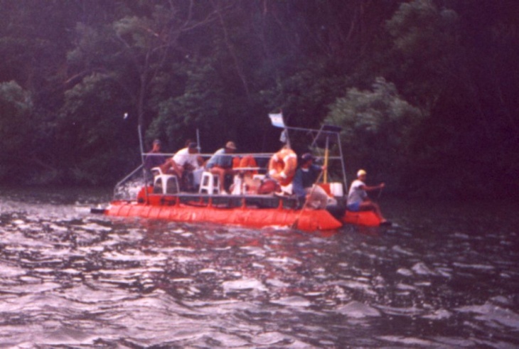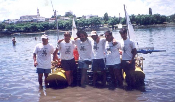 Rafael señaló que “nos separaba varios kilómetros una de otra balsa, esto lo hacía más interesante ya que cada grupo tenía libertad de planificar y resolver solos sus dificultades. Después de varias experiencias y un montón de anécdotas, de remar y pedalear una hora por turno, de navegar hasta 14 horas diarias, de pasar algunas noches al sereno en bolsa de dormir solamente, llegamos a Viedma el jueves 27 de enero del 2000”.