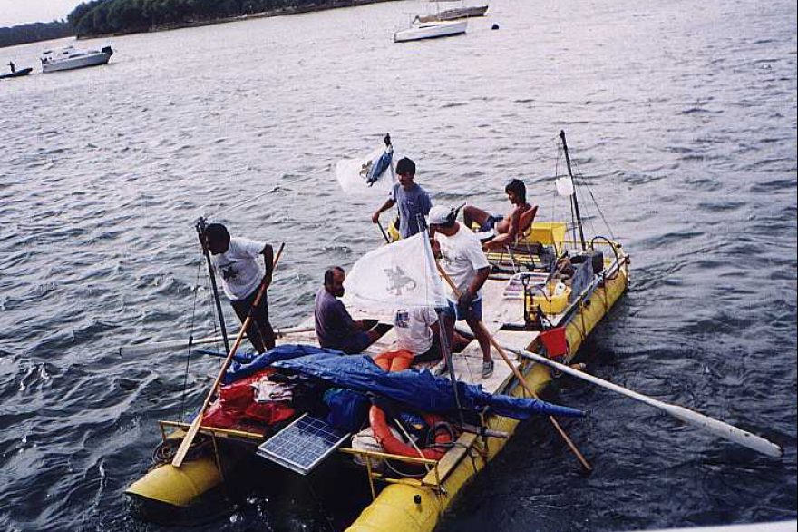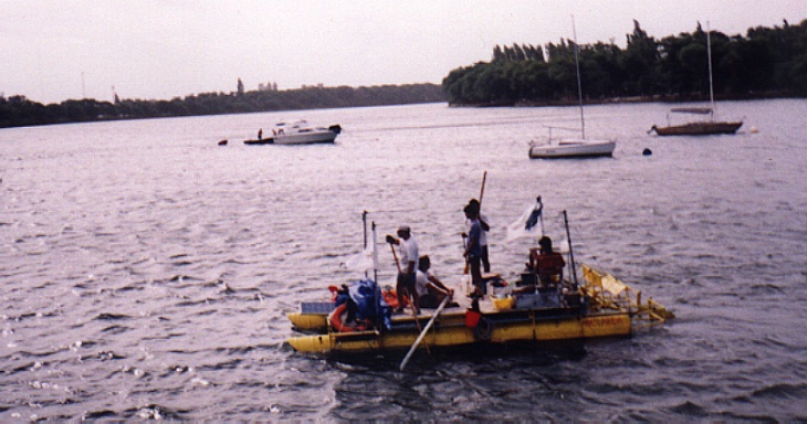 “Trabajamos duro aproximadamente desde mediados de 1999, para botarla al dique Paso Piedra sobre fines de noviembre. Probamos ansiosos todo, flotabilidad, el sistema de pedaleo, timón, en fin, convencido del buen funcionamiento, esperamos al 15 de enero para cargar “Abelarda”, nombre que le pusieron a su balsa