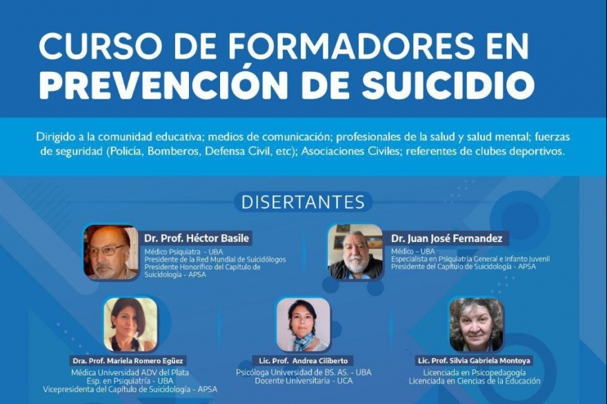 Tras la apertura de Curso, disertará el Dr. Héctor Basile, psiquiatra y presidente de la Red Mundial de Suicidólogos, quien expondrá sobre la situación epidemiológica nacional de la problemática, como así también su alcance a nivel provincial.