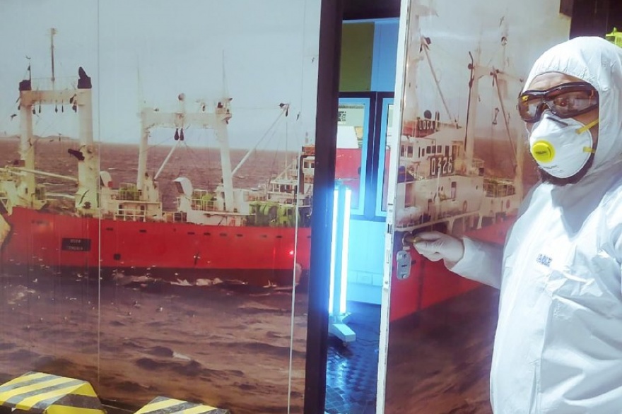 El titular del área, dependiente de la Subsecretaría de Salud Ocupacional y Fiscalización Sanitaria, Aníbal Viscido, confirmó el hecho e indicó que dicha tarea se lleva adelante “una vez al día, cuando se terminan las tareas sanitarias de control de los pacientes con COVID-19 que están aislados en el buque pesquero”.