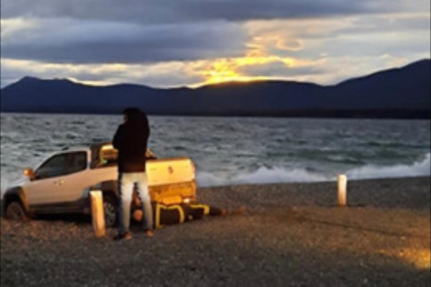 Es que dos personas a bordo de una camioneta Fiat se dirigieron a la costa del lago Fagnano con la intención de disfrutar del atardecer.