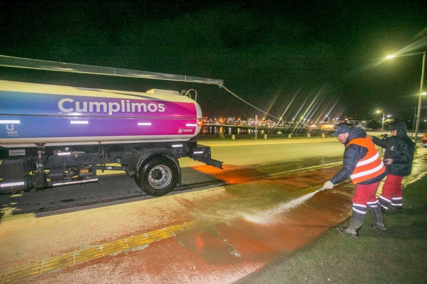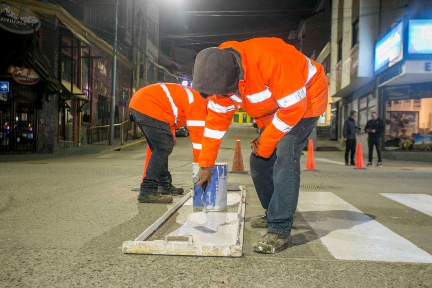 Avanzan las tareas de limpieza y pintura en la zona centríca de Ushuaia
