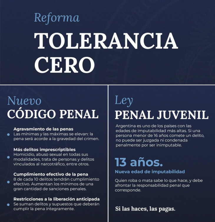 En el primer año del gobierno de Milei se creó una comisión de especialistas para redactar un anteproyecto de reforma del Código Penal, como ya se había hecho en otras presidencias. La reforma presentada unifica todo en un único cuerpo normativo, ampliando la cantidad de artículos de 316 a 920.