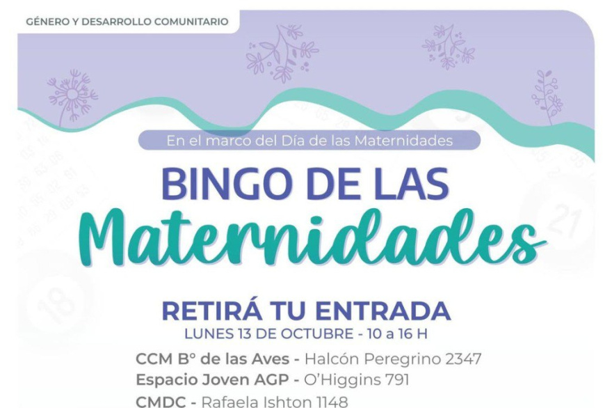 En el marco del Mes de las Maternidades, el Municipio de Río Grande continúa impulsando espacios de encuentro, disfrute y reflexión entre mujeres y disidencias de la ciudad. Las interesadas en participar del tradicional Bingo podrán retirar sus entradas el lunes 13 de octubre, de 10 a 16 horas, en diferentes dependencias municipales.