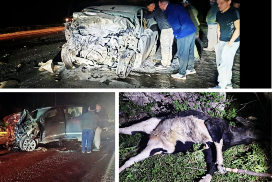 En las inmediaciones del siniestro, personal policial encontró dos vacunos muertos, lo que refuerza la presunción de que la presencia de animales sueltos fue determinante en la tragedia. Ambos vehículos resultaron con daños de gran magnitud.