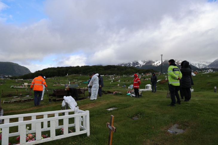 USHUAIA.- En un inusual operativo, la medida fue llevada adelante el viernes 14 de noviembre en el Cementerio Parque del Mar de la ciudad de Ushuaia, por el titular del Juzgado en lo Civil y Comercial Nº 1 del Distrito Judicial Sur, Dr. Sebastián Osado Viruel y contó con la asistencia de la secretaria, Dra. Valeria Rossi.