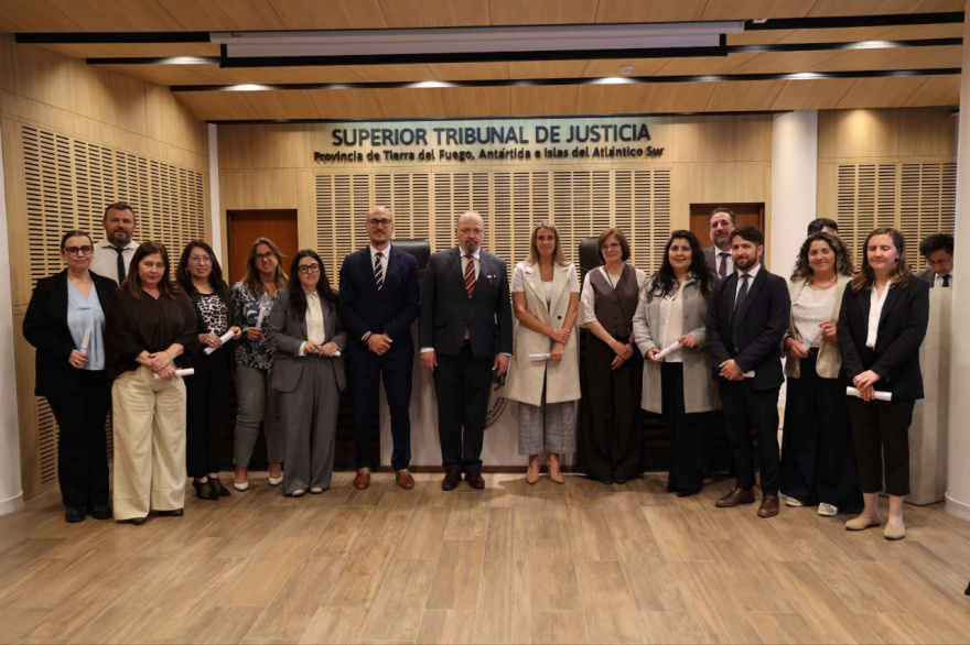 El Poder Judicial de Tierra del Fuego realizó la entrega de diplomas del Curso de Derecho Procesal y Técnicas de Litigación Civil, organizado de manera conjunta con la Fundación para el Desarrollo de las Ciencias Jurídicas.