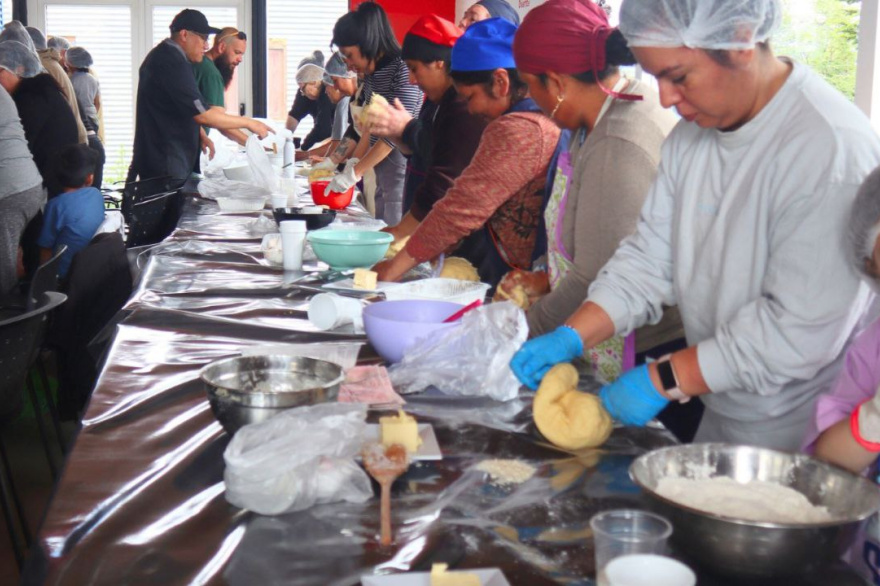 Durante la jornada, las familias participaron de una clase abierta de cocina navideña, donde elaboraron pan dulce casero junto a talleristas y equipos del área, compartiendo saberes y fortaleciendo vínculos comunitarios.