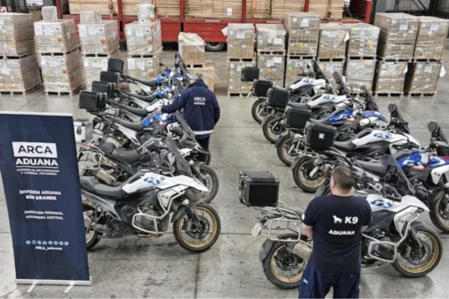 El operativo fue realizado por la Aduana en Tierra del Fuego. Las motocicletas, valuadas en unos 480 mil dólares, habrían ingresado de manera irregular al país con matrícula extranjera.