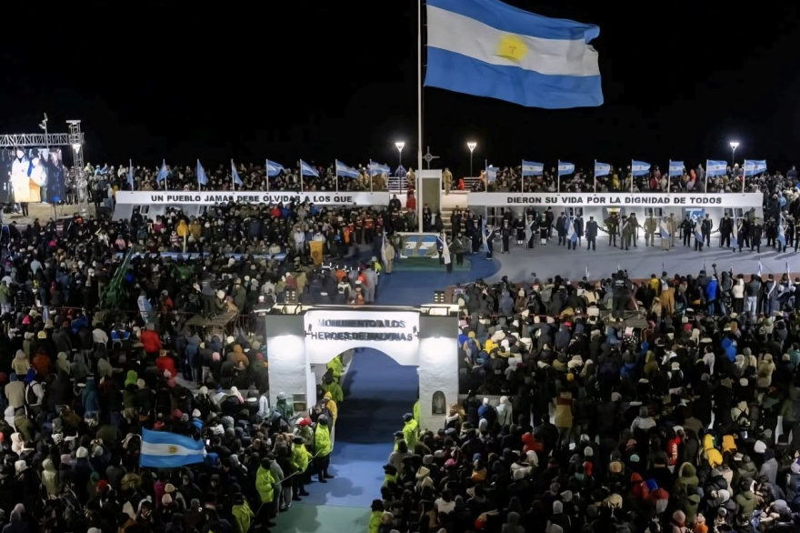 Como es tradición, en la Capital Nacional de la Vigilia de la Gesta de Malvinas, se encendieron 44 antorchas, una por cada año transcurrido desde la guerra con el Reino Unido. Luego el Batallón de Infantería de Marina Nº 5 presentó un simulacro de la "Operación Rosario", como se llamó al desembarco en 1982.
